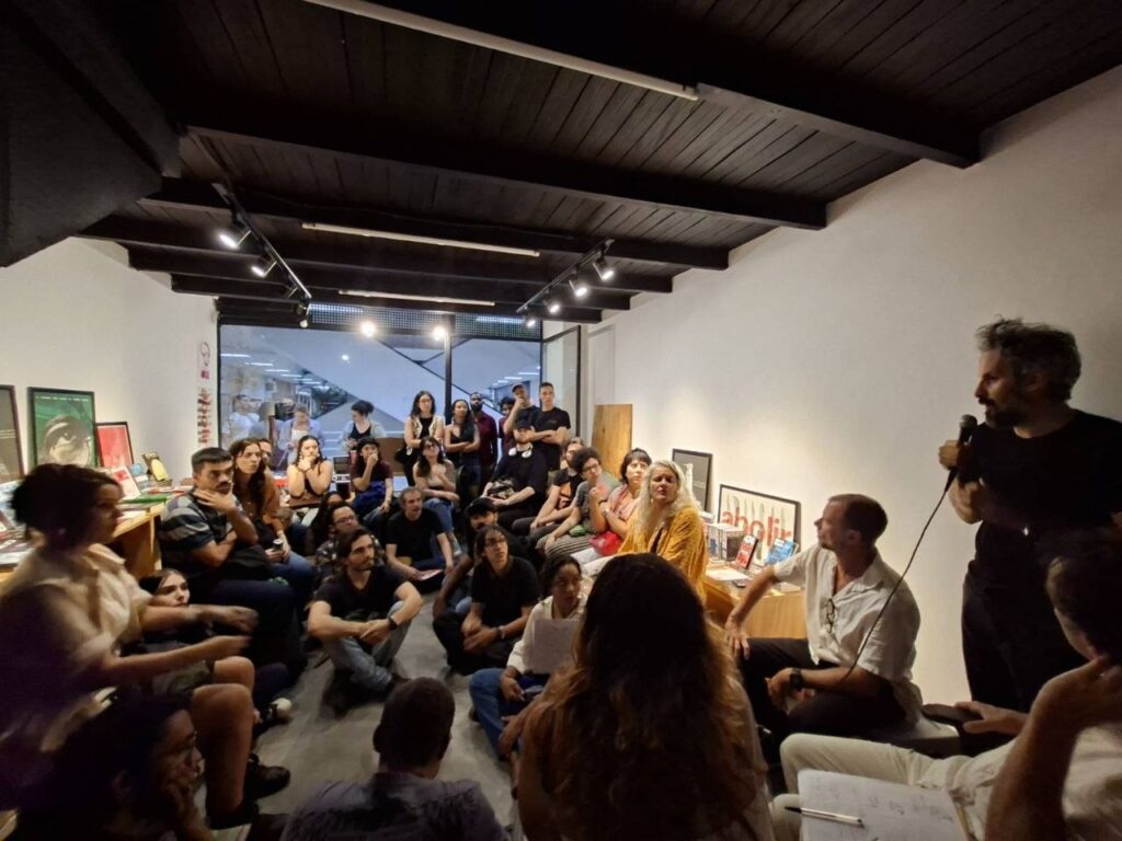 Realizamos um Encontros Tocaia na sede da SobInfluencia, na Galeria Metrópole, centro de São Paulo, no dia dia 20/03 (imagem acima). Foi uma conversa aberta para pensar os tremores do nosso presente: o que significa hoje a forma política de uma prática radical? como sustentar um estudo coletivo, clandestino, desalinhado, antagonista e que seja também uma forma de vida?